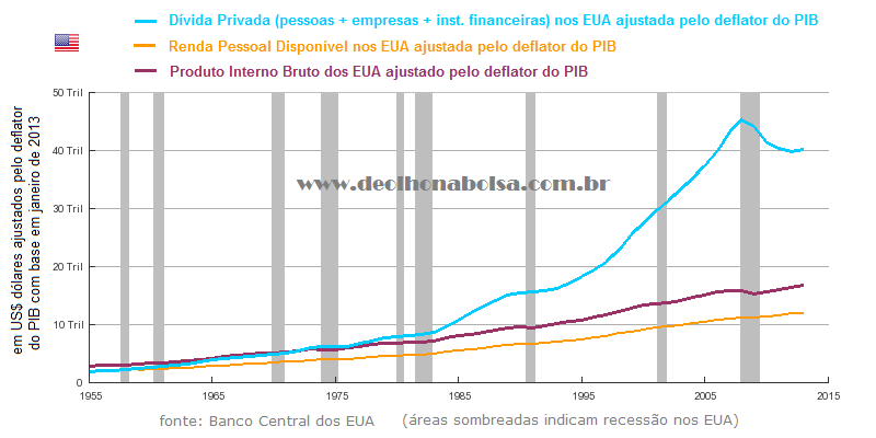 endividamento privado norte-americano é muito maior! Ele retraiu pouco e já foi estimulado a subir