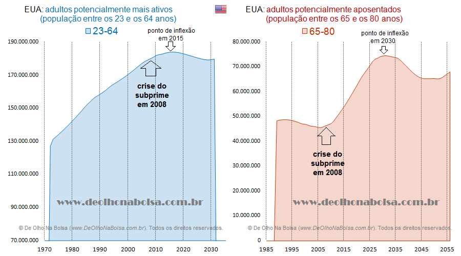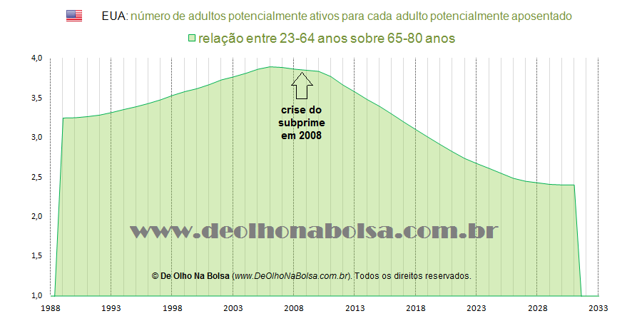 populacional bem melhor que o japonês, os EUA são a segunda grande economia a apresentar tais sintomas. Mas,
