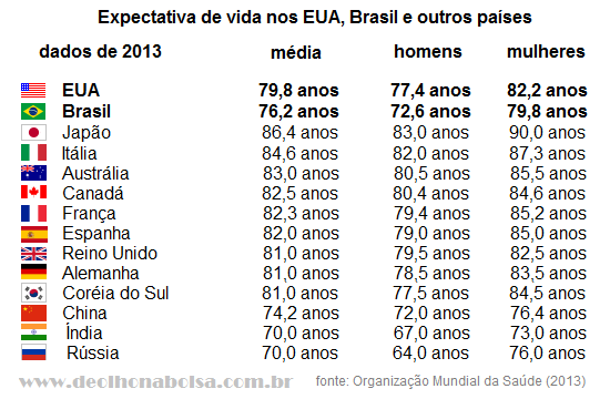 que falaremos primeiro. A expectativa de vida por lá, média entre ambos os sexos, é de aproximadamente 80