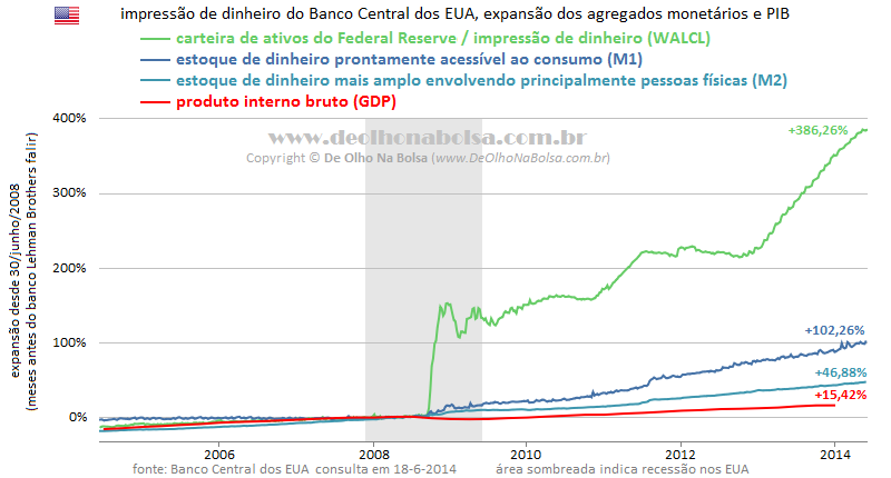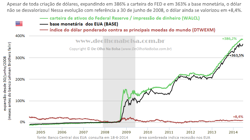 Seis anos de muita impressão de dólares e grande expansão da base monetária nos EUA não conseguiram