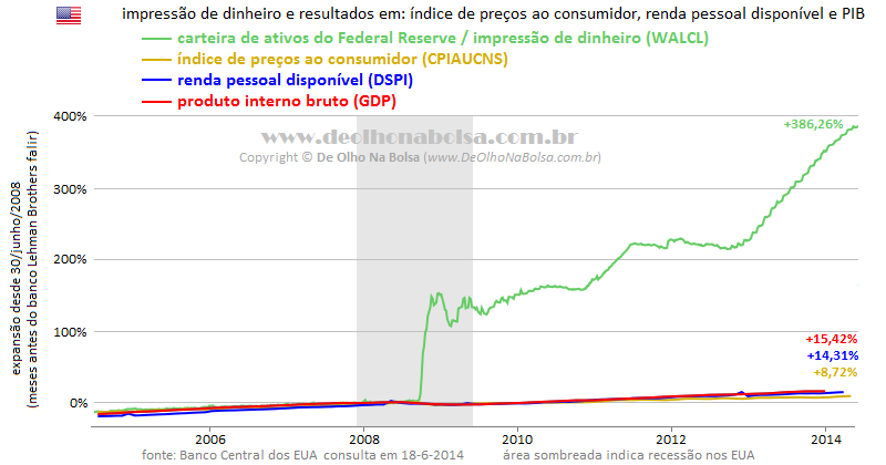 O resultado é que o FED, apesar de inchar sua carteira de ativos em 386,26%, só conseguiu gerar um