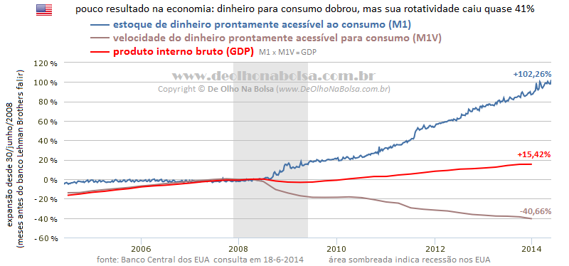 Contudo, a velocidade com que esse dinheiro troca de mãos na economia caiu 40% (M1V).