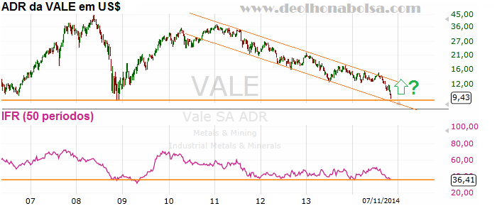 Já a mineradora Vale vem sofrendo bastante com os menores preços do minério de ferro, mas talvez encontre