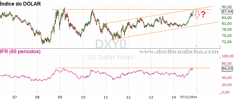 O dólar encontra-se próximo de duas resistências importantes: a linha superior do seu canal de alta