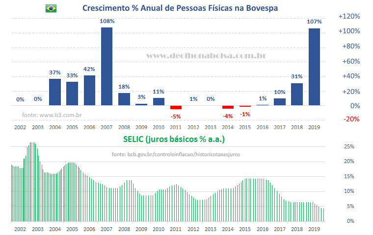 De fato, o número de pessoas físicas registradas na Bolsa de Valores de São Paulo mais que dobrou em 2019. E isso não espanta por algumas razões óbvias.