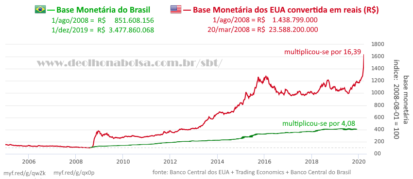 Enquanto os EUA podem expandir sua quantidade de moeda sem minar seu valor e prestígio no câmbio internacional, o Brasil não pode fazer o mesmo. Uma expansão monetária brasileira, além da que já vem ocorrendo sistematicamente, só nos desmoralizaria, desvalorizando ainda mais nosso real. Sem falar no problema que a inflação representaria para nossa população, especialmente para as classes mais humildes.
