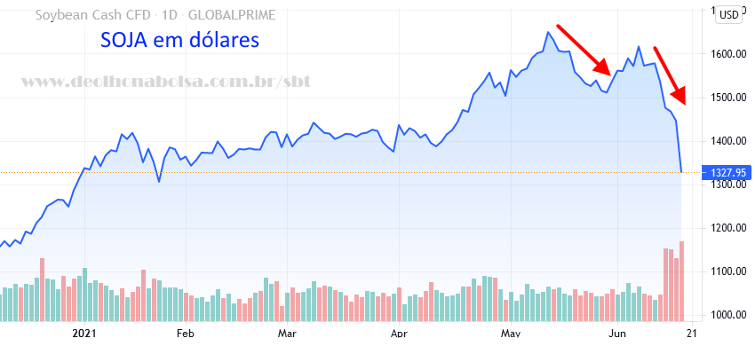Soja, milho, e trigo também recuaram nos preços.