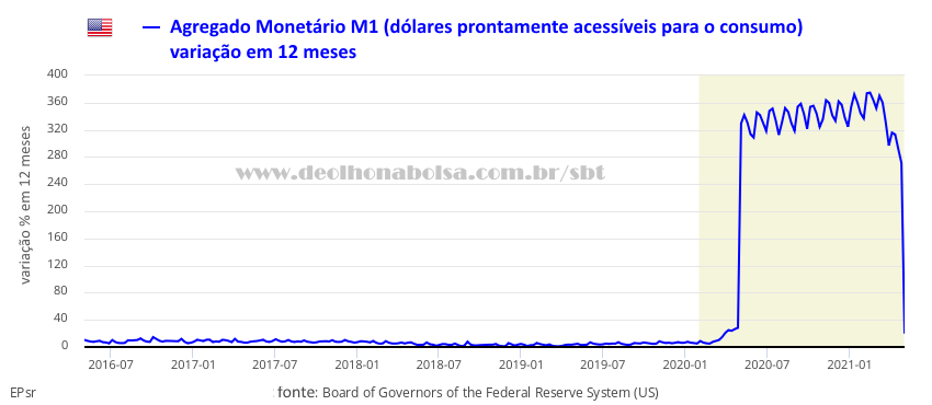 o aumento do agregado monetário M1 (estoque de dólares prontamente acessíveis ao consumo);