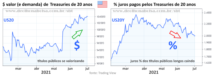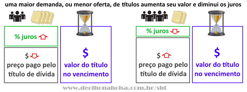 Como já expliquei noutros textos, juros são inversamente proporcionais aos preços dos papéis, pois são a diferença entre o preço pago pelo título e o valor dele no vencimento.