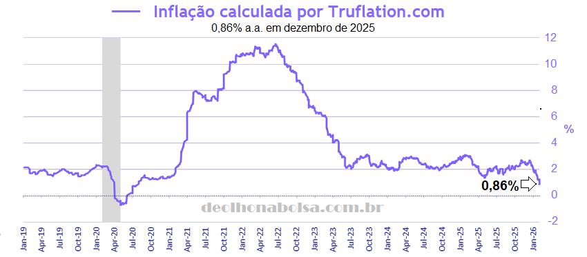 A Truflation, que monitora a inflação de uma forma independente, indicava uma inflação mais alta, quando o Fed e o Bureau of Labor Statistics publicavam números mais baixos. Agora o site da Truflation acusa uma inflação de 0,86%. Já muito menor que os 2,65% oficialmente divulgados.